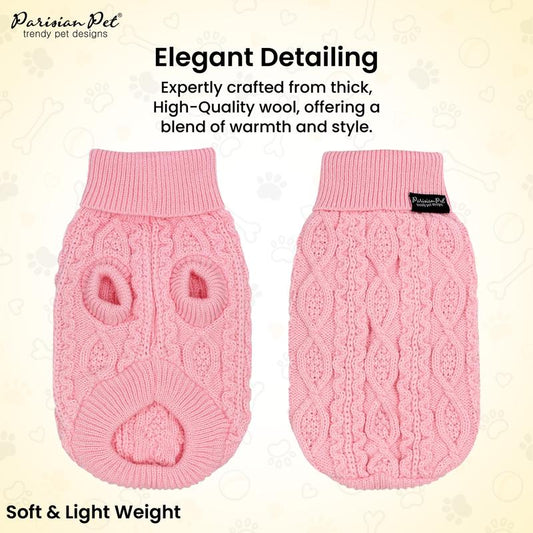 Chic Parisian Pet Pink Turtle Neck Cable Knit Dog Sweater - Cozy Pullover for All Sizes - Perfect...