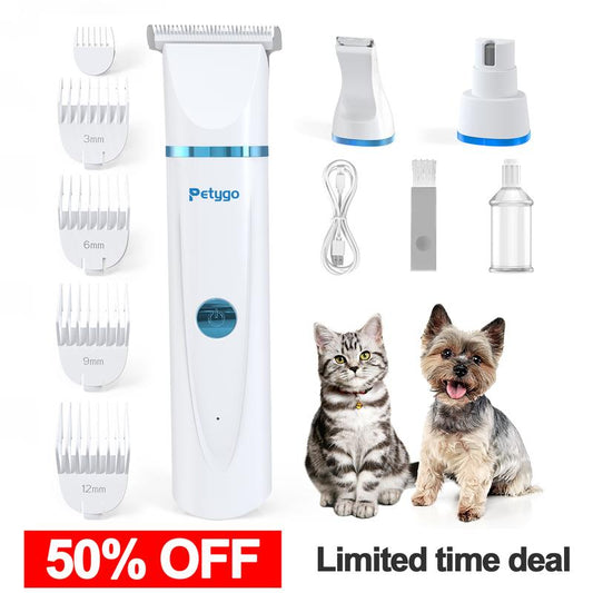 Petygo Ultimate 3-In-1 Dog Grooming Kit - Low-Noise, Rechargeable Clippers with Nail Grinder &...
